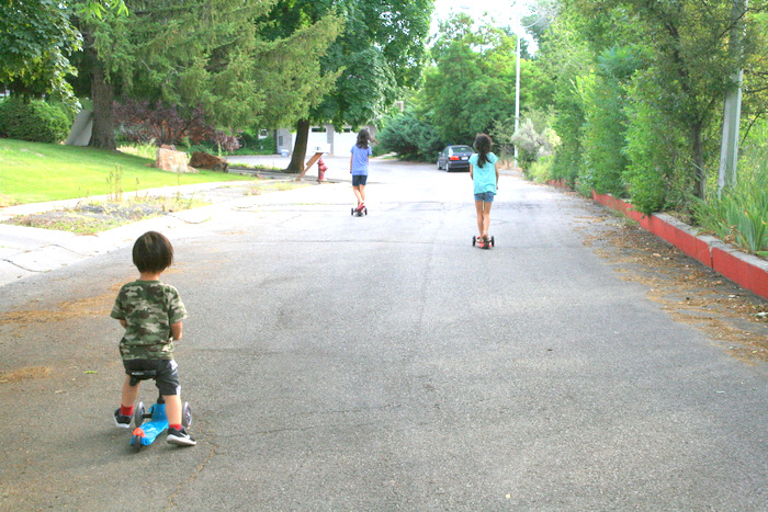 Before my son was born, we got the girls these scooters and my son would just watch them or I’d have to bike around with him since he always wants to play with his sisters and adores them. So we got him this little scooter, and you should have seen the first time he rode around with his sister, he was beaming left and right! He was so happy he was “same same” as his older sisters. And the last picture, he had just learned minutes before that if he lifts up his legs, he can go down fast and he doesn’t have to walk his legs while going down on his scooter! He was so proud of himself. He tries so hard to keep up with his sisters and the girls are so sweet, they always come back around to him to go with him or to wait for him. It makes me feel less guilty that he’s kind of the odd one out and the third-wheel. He’ll be fine being the only boy in the family and having two sisters who are 4 and 5 years older than him, right? He wouldn’t feel left out right? And his sisters will always make sure to include him? I don’t know. It’s something I am constantly debating about. Why can’t we have children without ever going through the pregnancy, the labor & the recovery, breastfeeding and getting practically no sleep for 6 months and all the poopy diapers? I’d have 10 kids if that was the case!