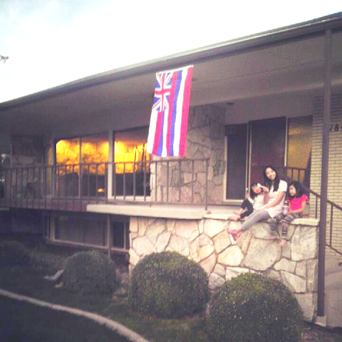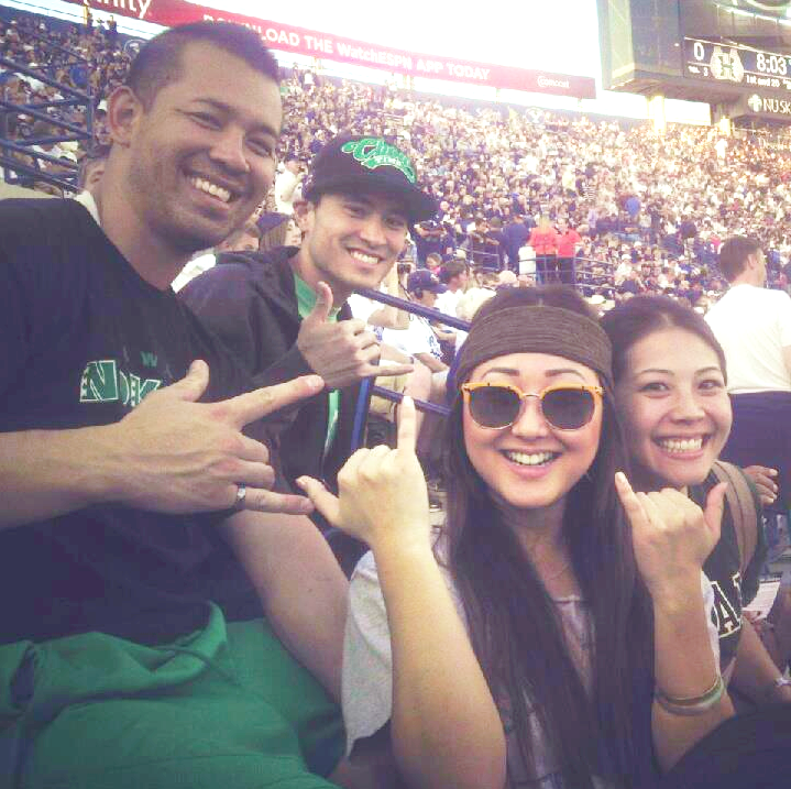 We went to the BYU vs. UH game with our friends from HI(BYU smoked UH). Jay is from HI so he put the HI flag up the day before the game day. And yes, that’s us eating ice-cream on the porch.