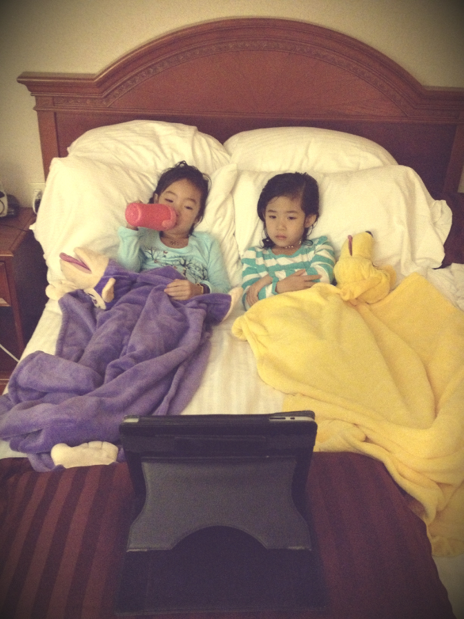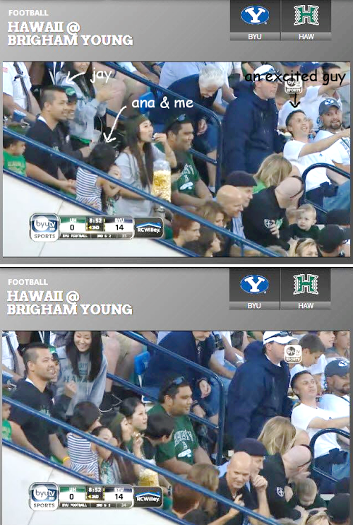And Jay’s friend sent him a clip of the game and we were on t.v! Ana was putting “pretend make-up” on my eyes during this clip.