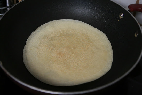 - Cook the crepe for about 2 minutes, until the bottom is light brown. Loosen with a spatula, turn and cook the other side. Serve hot.