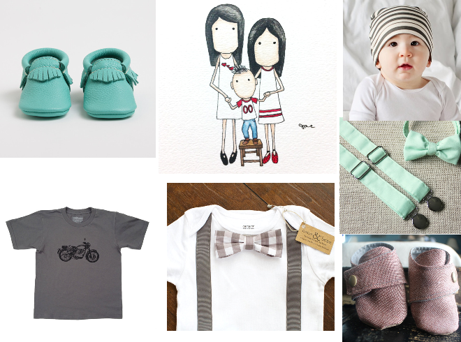 His Sunday best: suspender-necktie onesie: Coco and Beau || moccasins: Freshly Picked