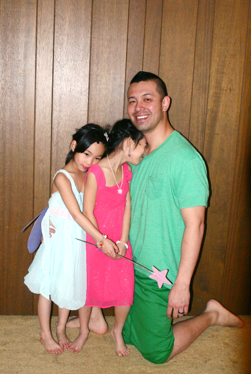 Daddy teaching her how to tie shoelaces. She was getting so frustrated.