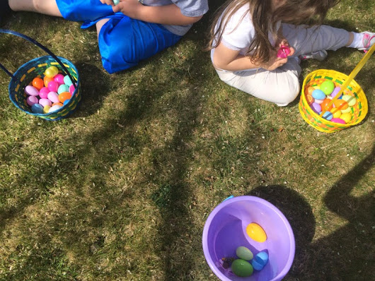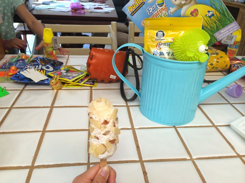 then on Sunday we went to church and the kids woke up to some Easter goodies from the Easter bunny.