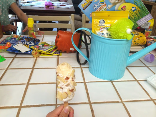 they even put “a golden egg” ticket in one of the eggs and gave a surprise gift! our neighborhood boy found the golden egg and he received a fun dip. 🙂