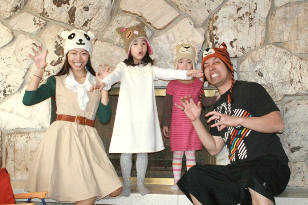 I love the hats, and the girls are adorable as always, but sheesh Jay, you couldn't change out of the basketball shorts? You make me laugh!