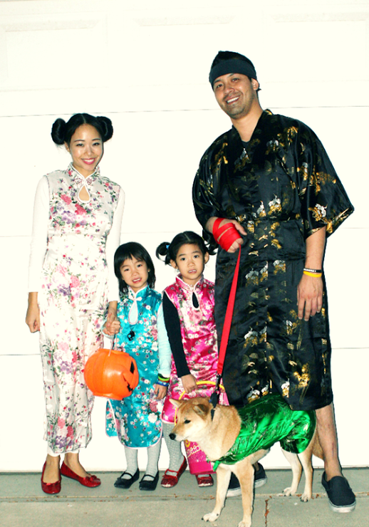 Ha ha! My husband would be sitting on the bench doing the same thing. We don't celebrate halloween, but I think the entire family looks adorable.