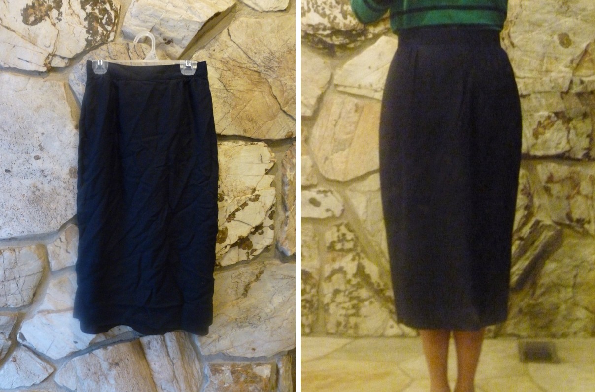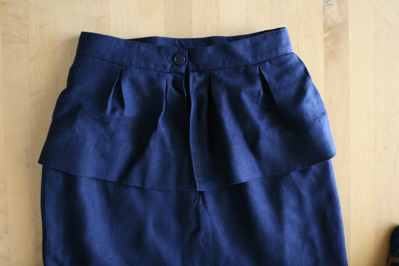 savers was having a 50% off sale on MLK day so i got this navy blue pencil skirt for $2.50. i knew i could do something with the extra length so i bought it and the honeyed peplum skirt came to mind.