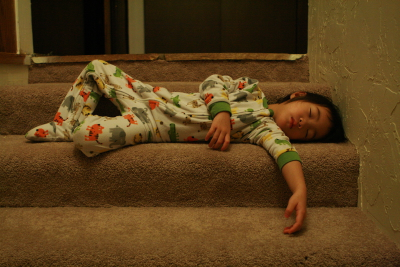Haha, oh my gosh, adorable! I remember falling asleep curled up on the floor in front of my parents' bedroom door when I was little. The things little kids do!