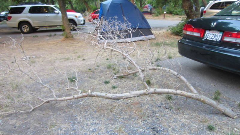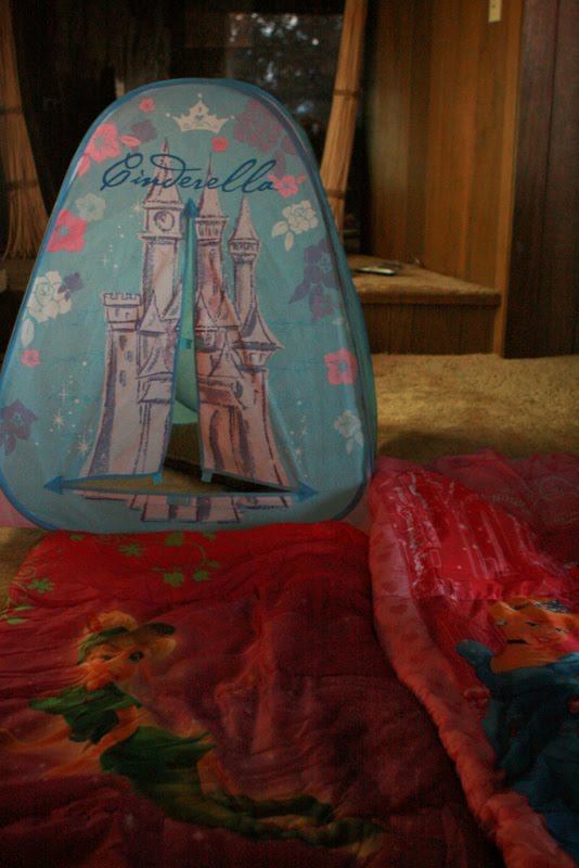 we turn on the fireplace, take out our tent and sleeping bags