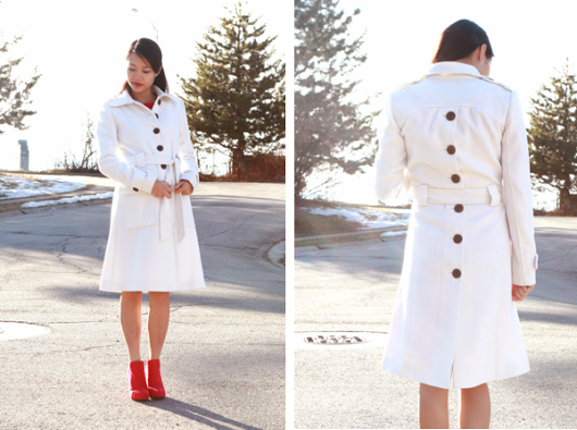 red dress: c/o oasap | white coat: c/o do-a-fashion | red ankle boots: sears